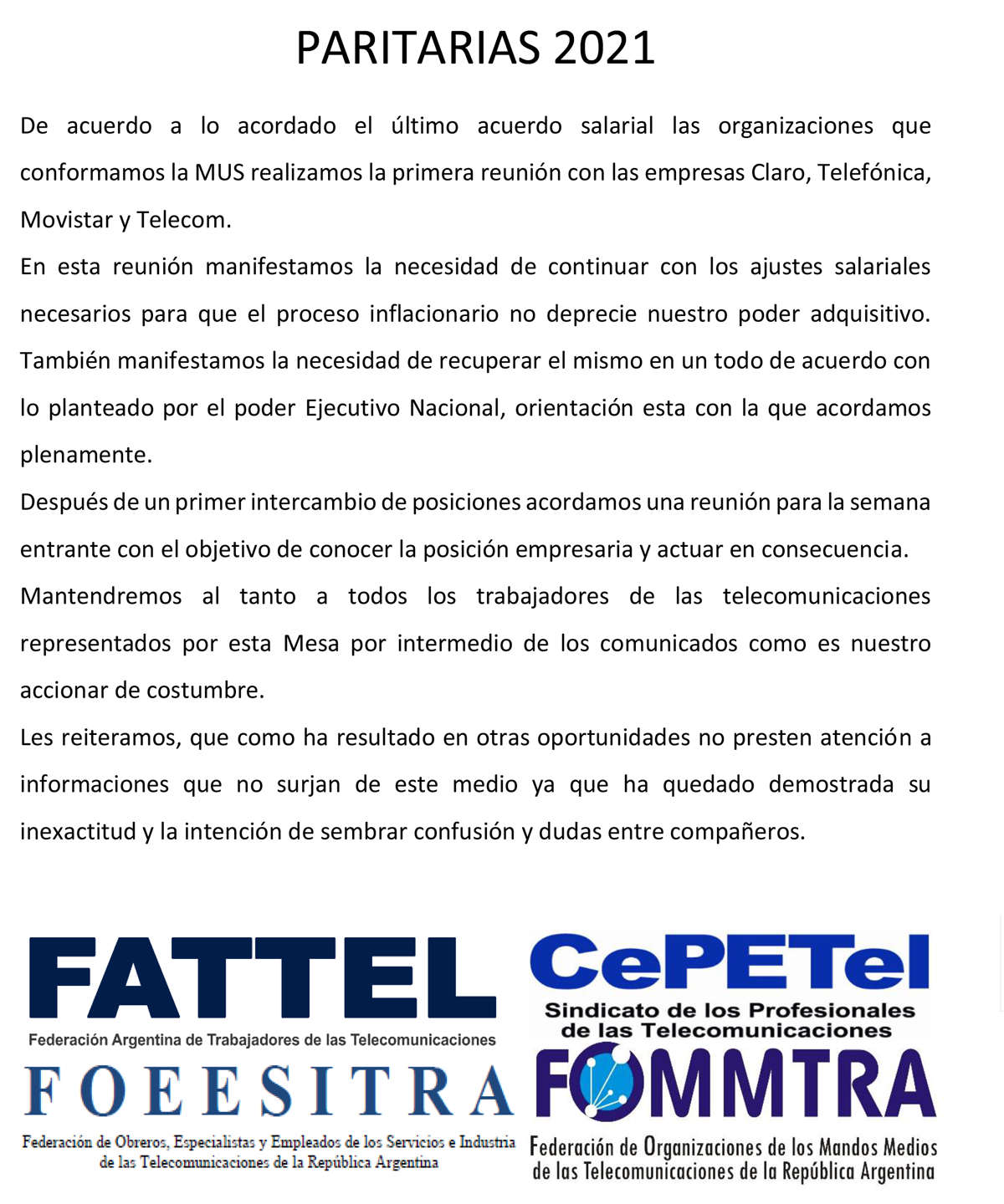 Comunicado de la MUS – PARITARIA SALARIAL 2021