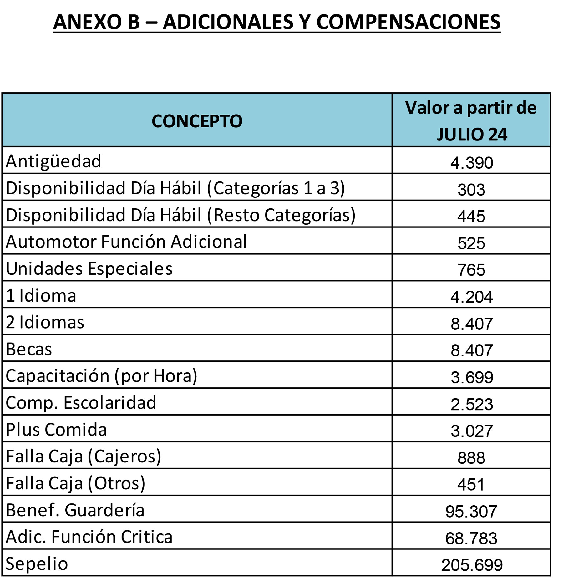 TECO (fija) Escala salarial Julio ´24 – Base paritaria 24 -25
