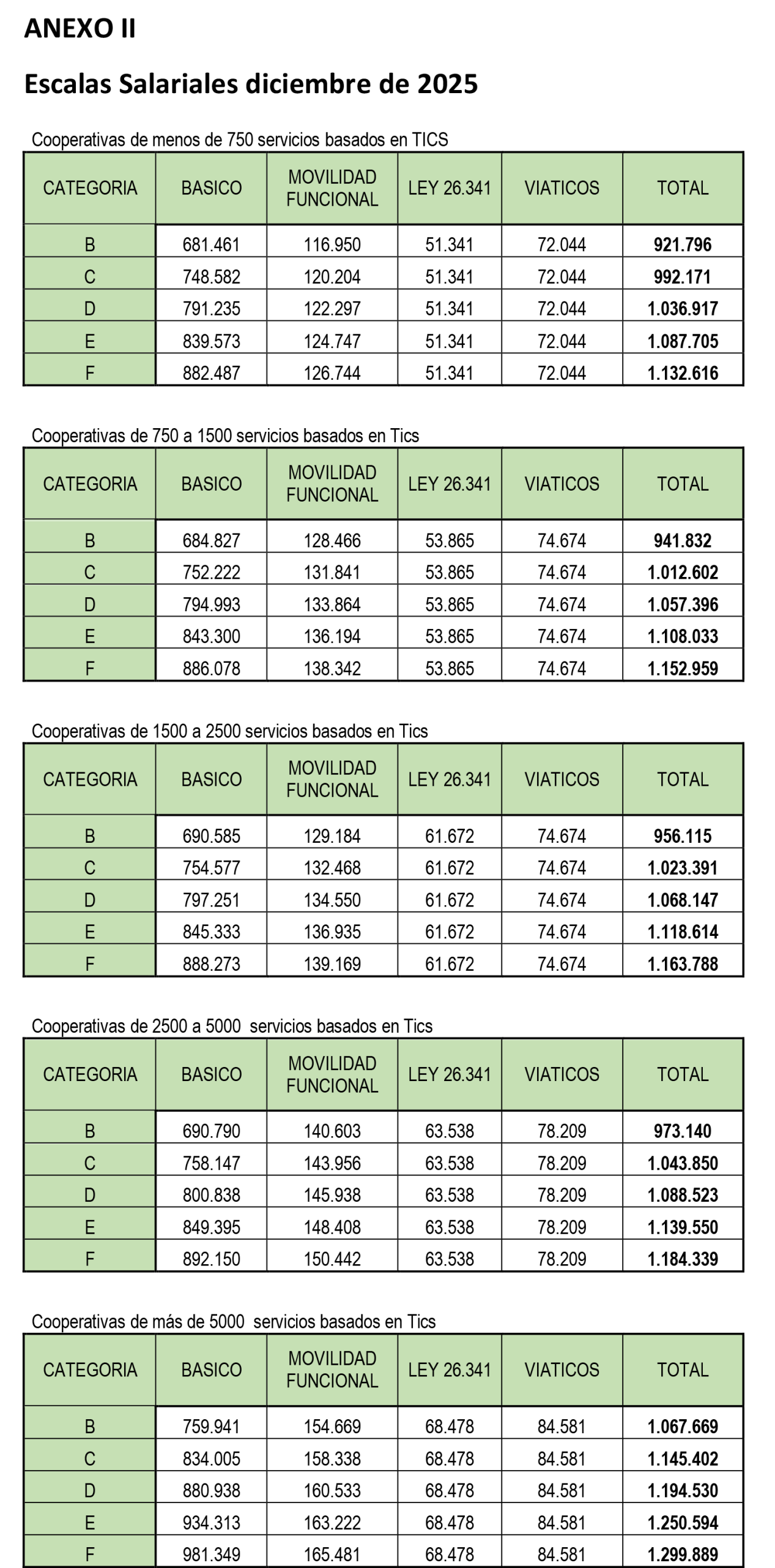 FECOTEL – escalas salariales noviembre- diciembre ´25