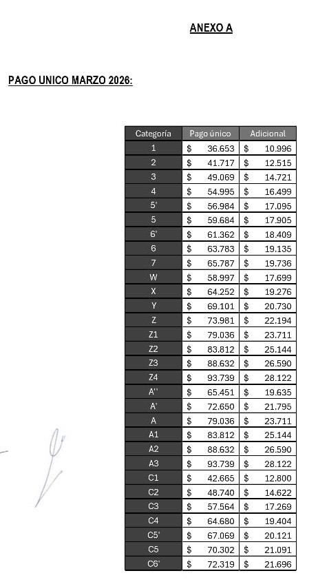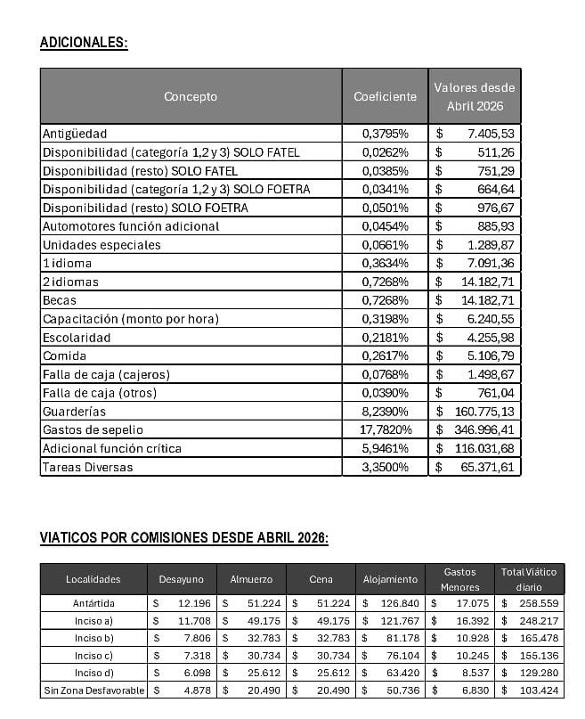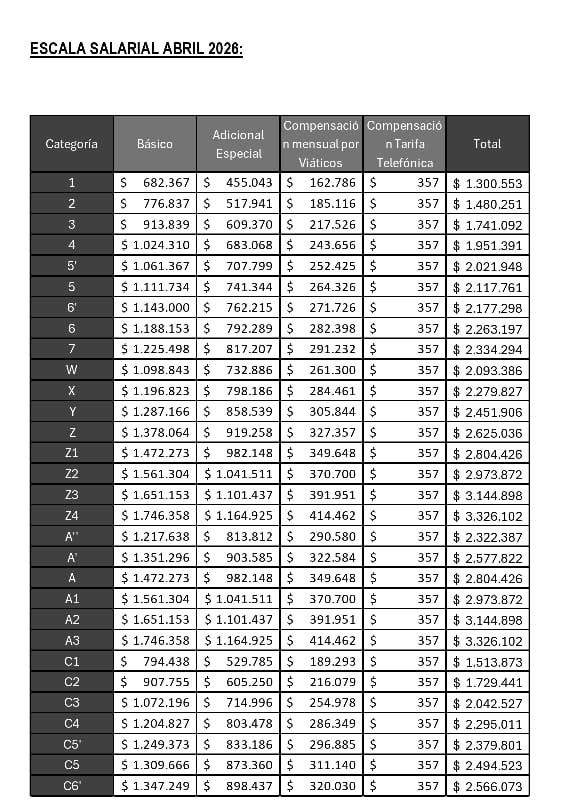 TASA (fija) PU Marzo 26. Escala Salarial Abril 26