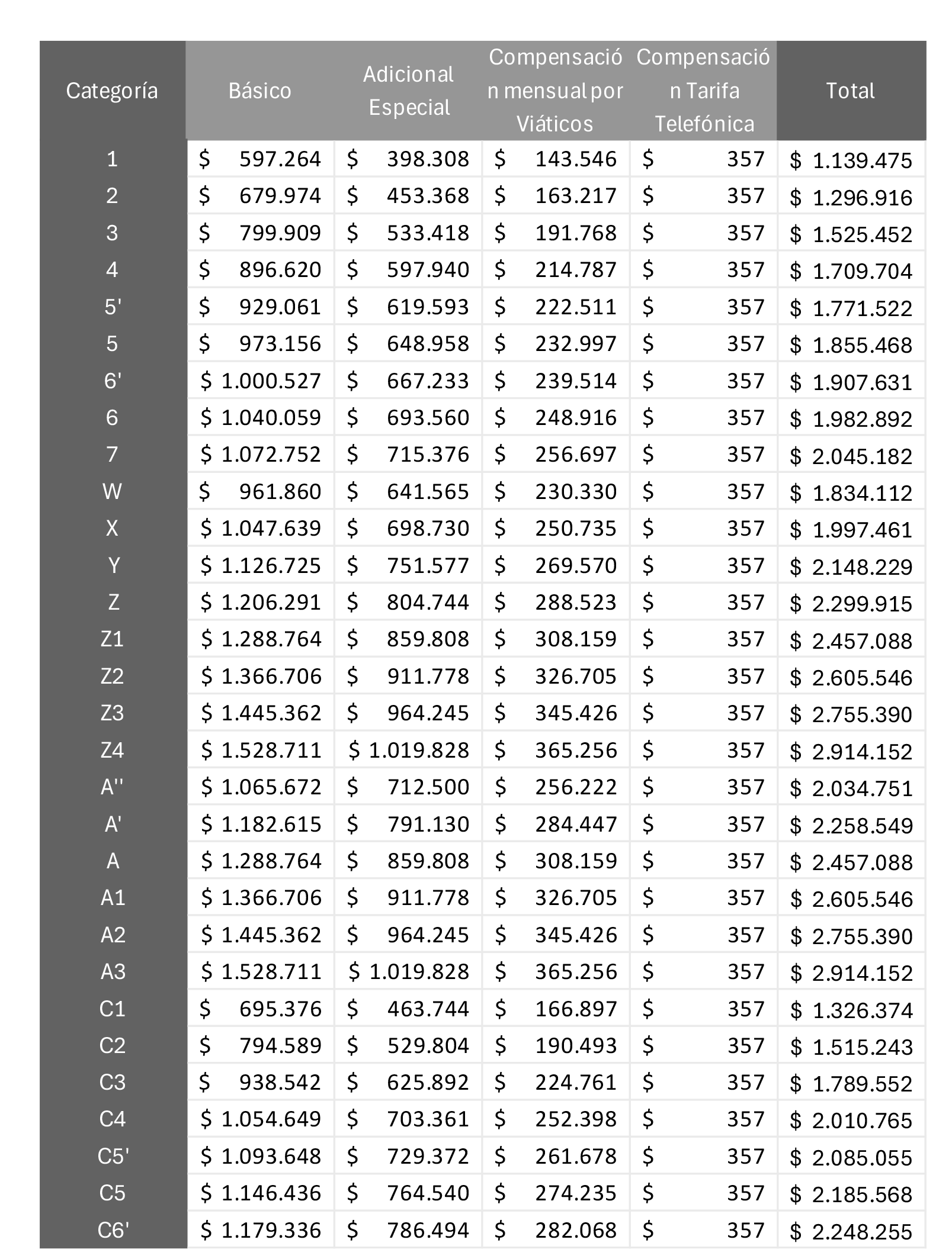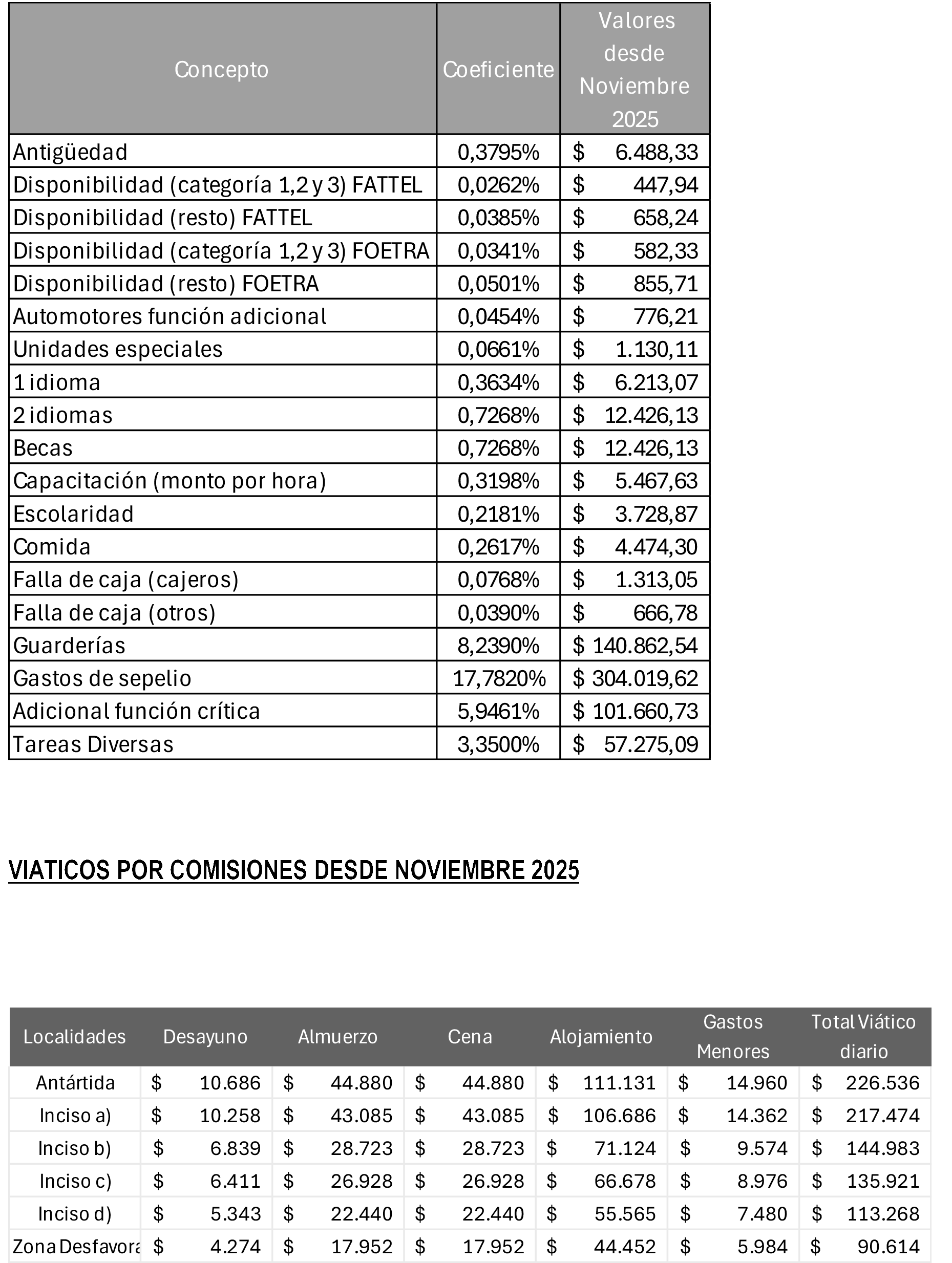 TASA (fija). PU octubre´25- escala salarial noviembre´25