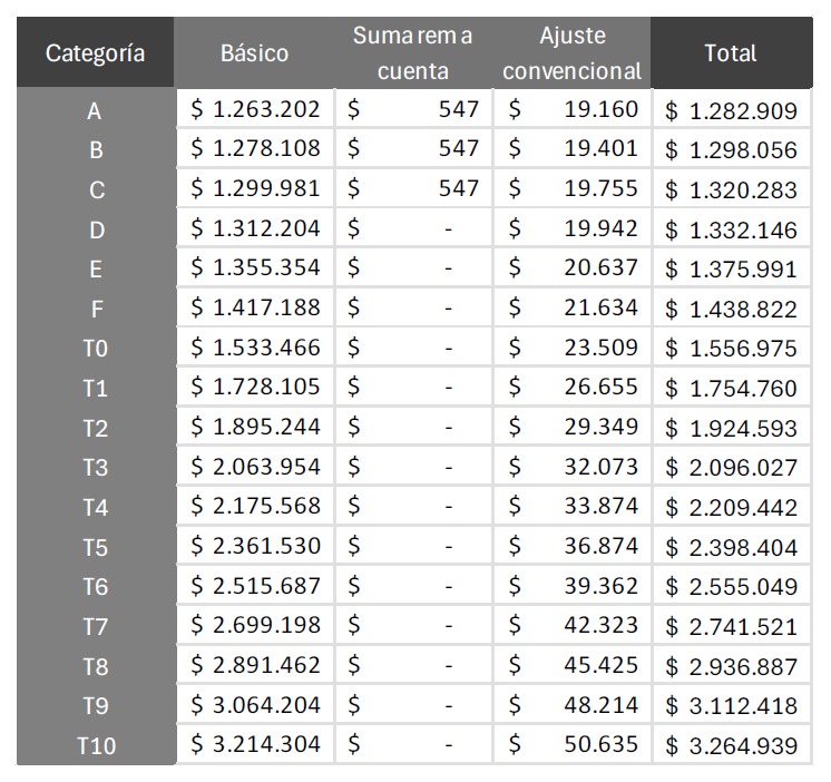 TASA (móvil). PU enero ´25- escala salarial febrero ´26