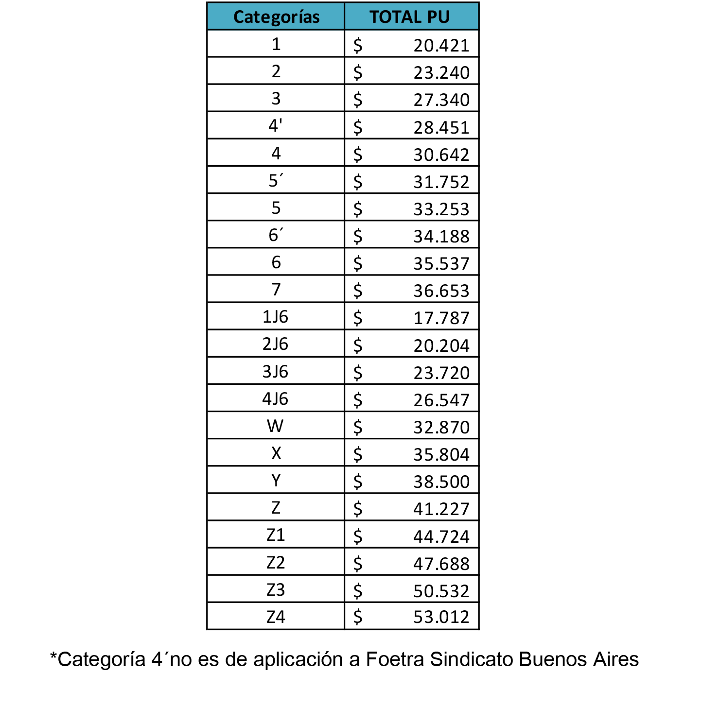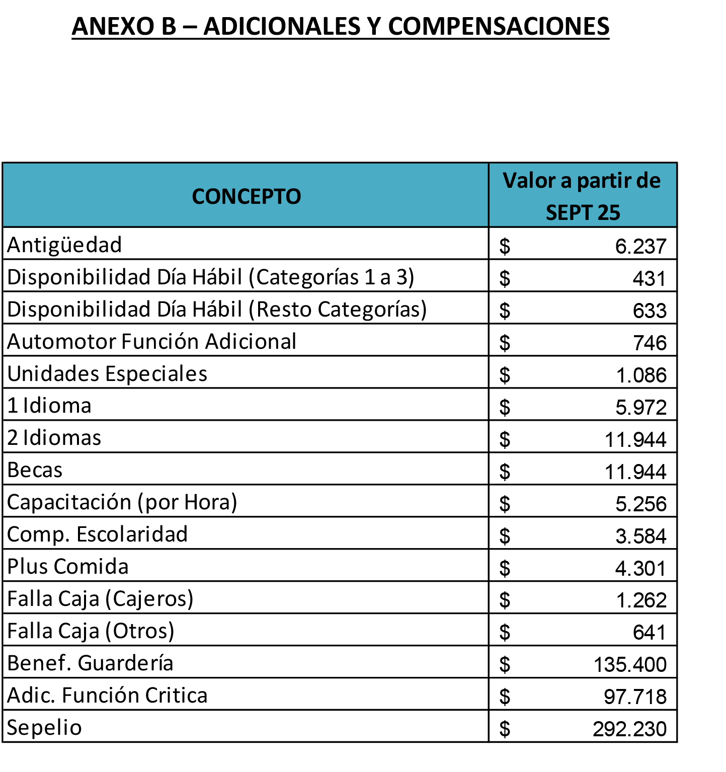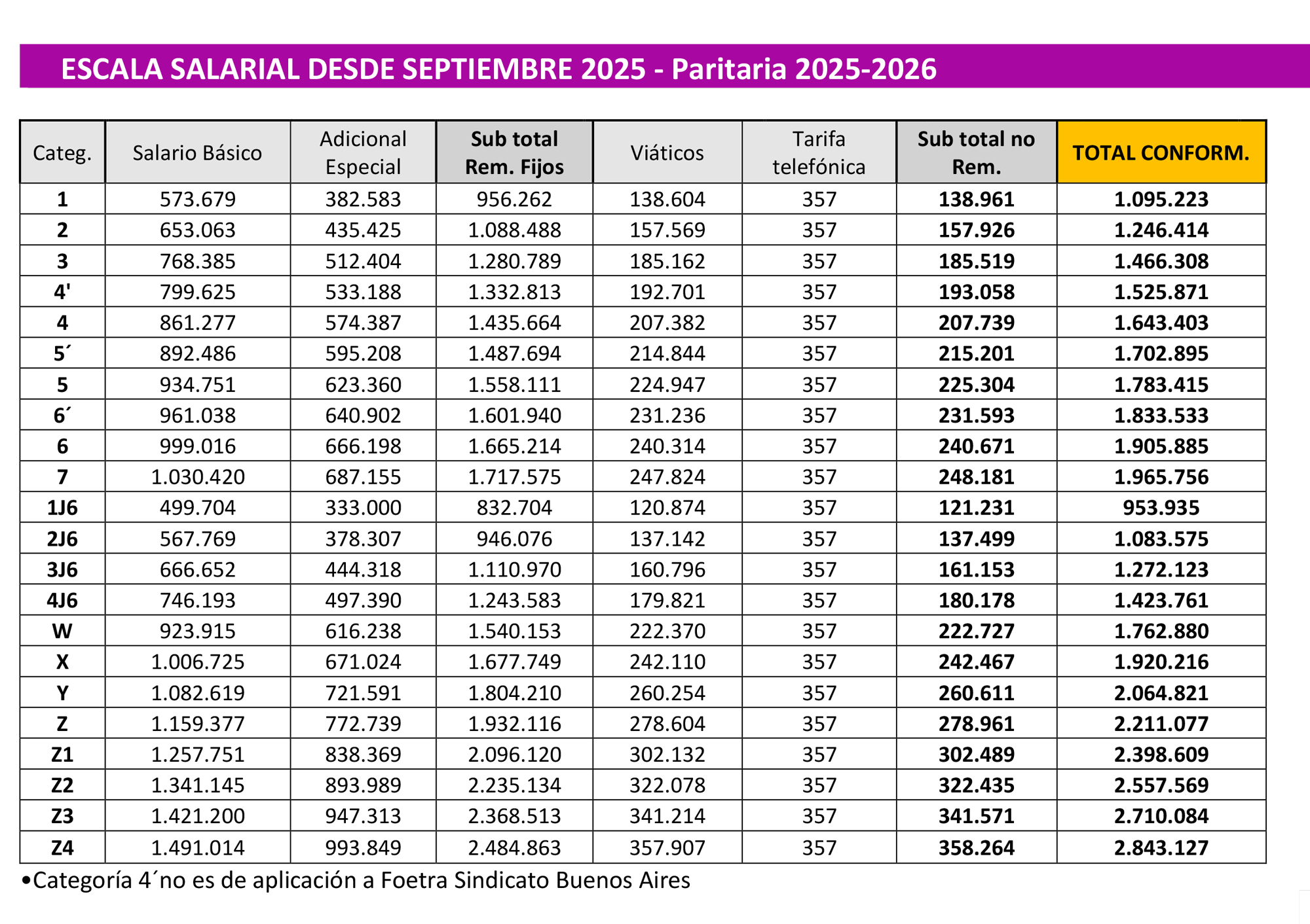 TECO (fija). PU agosto´25- escala salarial septiembre ´25
