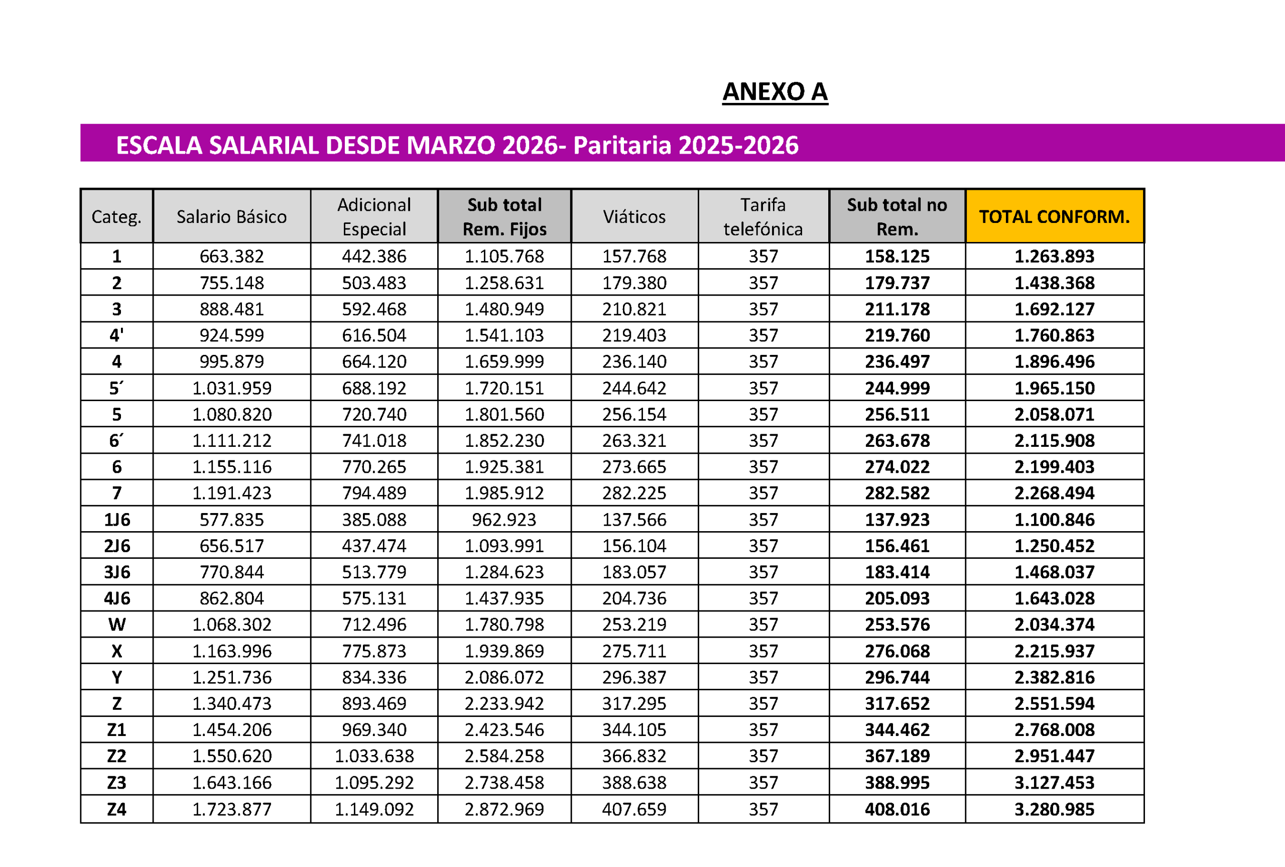 TECO (fija). PU febrero´26- escala salarial marzo´26