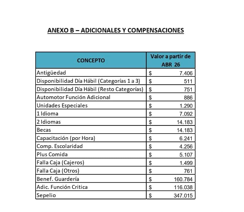 TECO (fija). PU marzo´26 – escala salarial abril´26