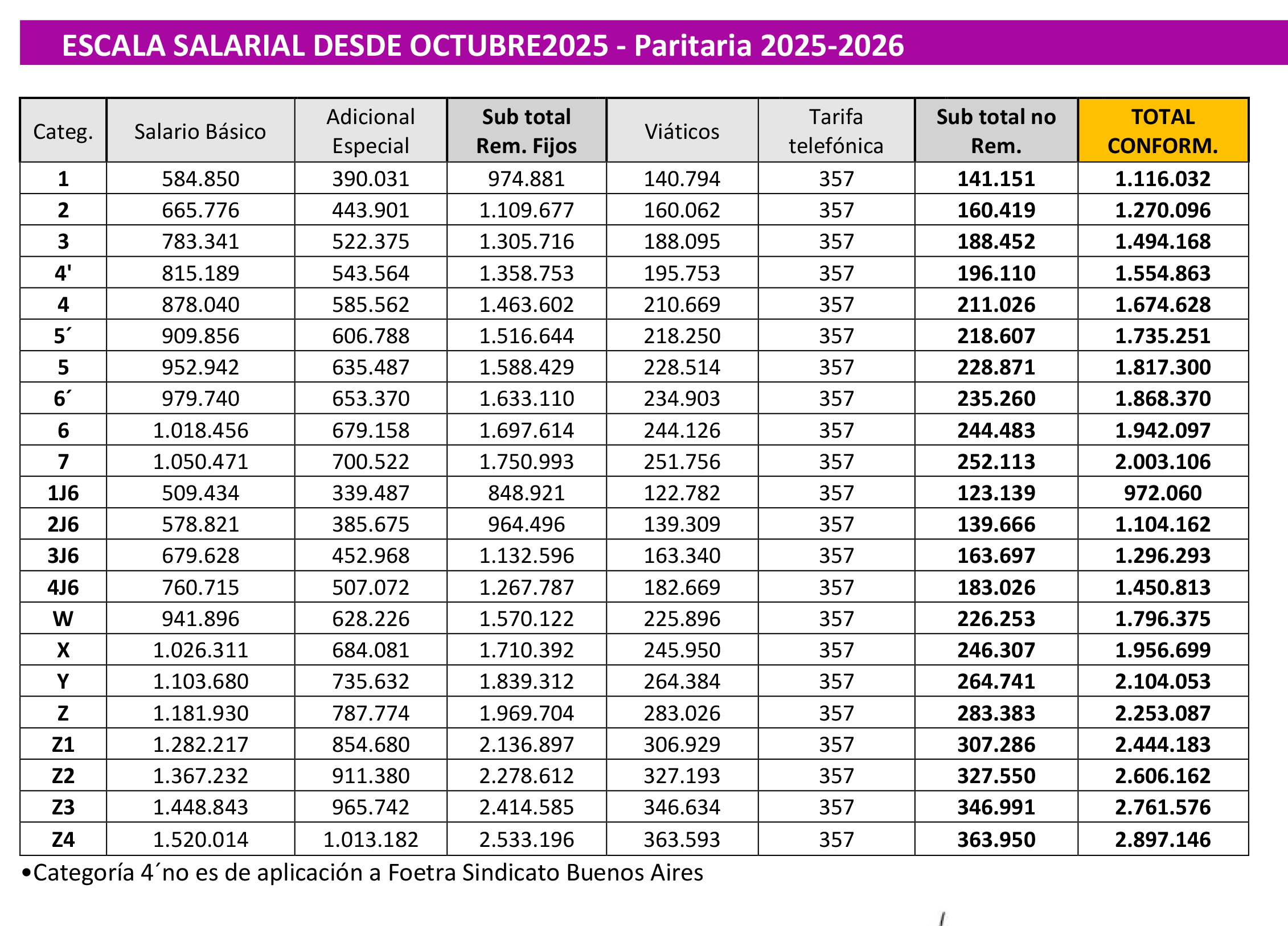 TECO (fija). PU septiembre´25- escala salarial octubre´25