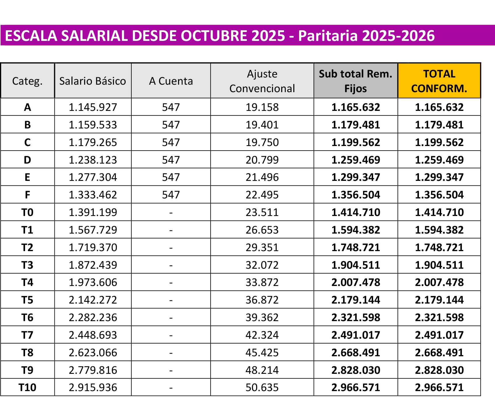 TECO (móvil). PU septiembre´25- escala salarial octubre´25